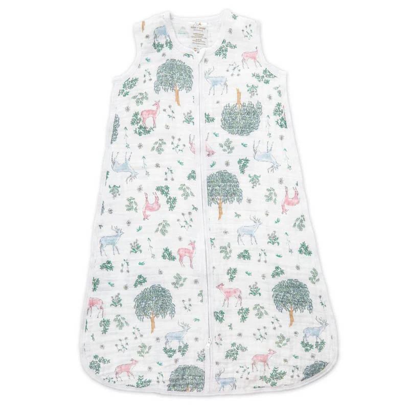 Impossible for little legs to kick off, aden + anais cotton muslin baby sleeping bag keeps baby feeling comfy and secure when transitioning out of a swaddle and beyond. Designed to be worn over pajamas, these light baby sleeping bag eliminates the need for loose blankets in the crib for a safer sleep. Made from a single layer of breathable cotton muslin, the wearable blanket allows for airflow, helping to reduce the risk of baby overheating for a peaceful night sleep for baby and you. Its convenient zipper opens from the bottom, making nighttime changes easy.